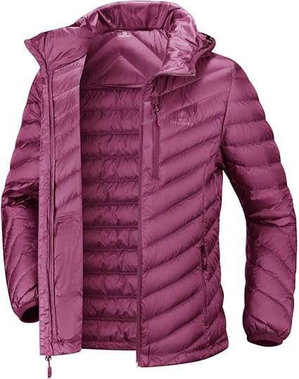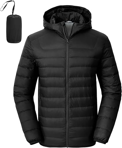 Men's Down Puffer Jacket with Hood Packable Lightweight Puffy Hooded Winter Coat Light Thin Insulated Jacket