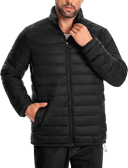 Men's Lightweight Puffer Jacket Insulated Water-Resistant Outdoor Winter Down Jacket for Men