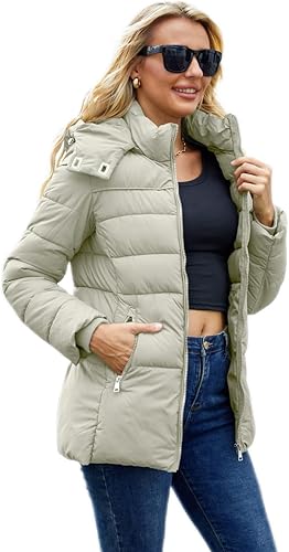 Puffer Jacket Womens Winter Coat with Hood Warm Lightweight Thickened Packable Down Jacket