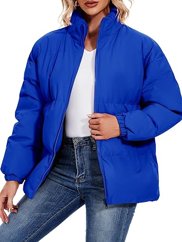 Women's Fashion Winter Long Sleeve Zip Puffer Jacket Pockets Baggy Short Down Coats